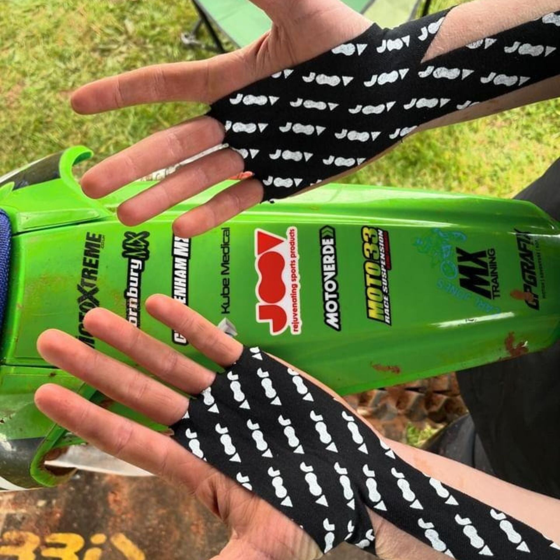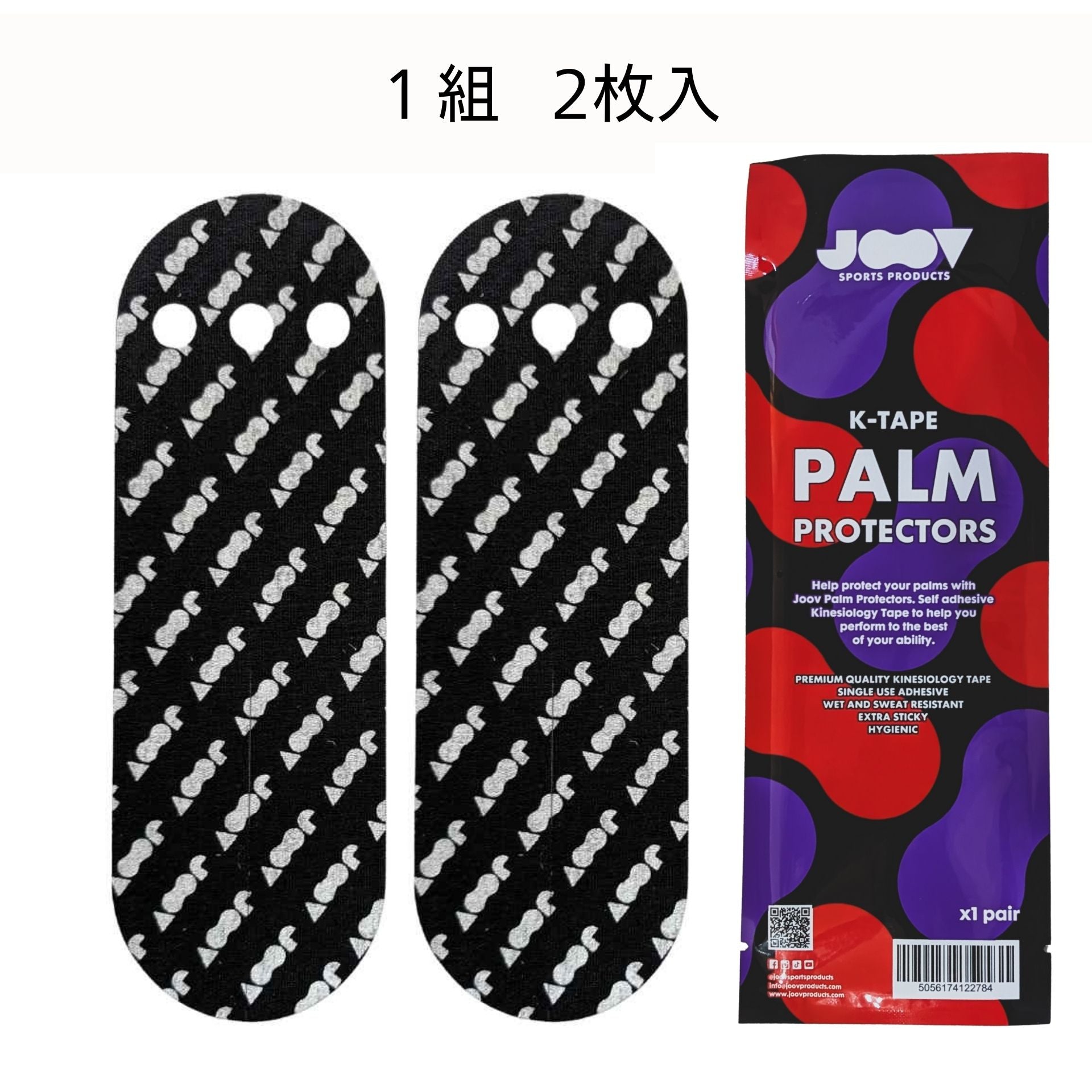 JOOVパームプロテクターは、最高品質の超粘着性キネシオロジーテープ(Kテープ)を使用しています。
